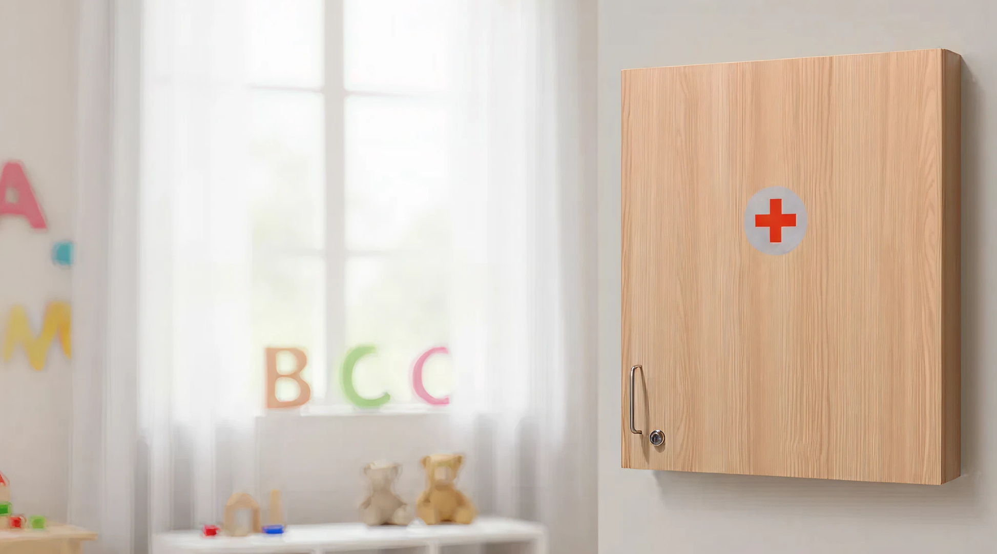 This wall-mounted medical cabinet gives your daycare or school a dedicated, lockable place for first-aid and staff-only supplies. It helps keep important items accessible to adults while staying out of children’s reach.